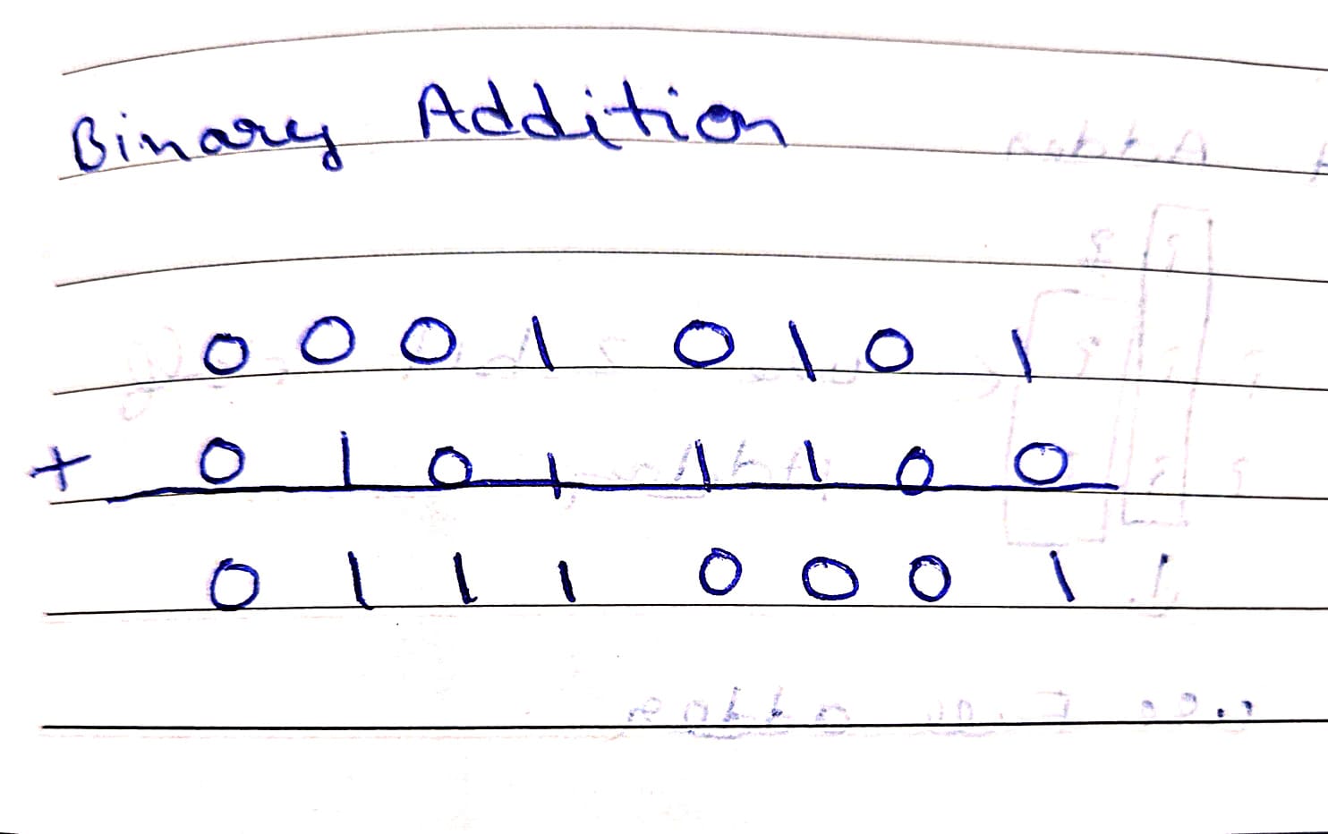 Binary addition is the same as normal addition, which we learnt in junior classes. The only difference is that it involves only 0 and 1. All the addition is done by keeping the binary number system in mind.